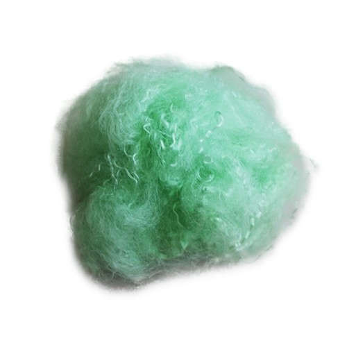 將優質PE原料經高溫熔融后由噴絲板和外部環形橫向吹風系統組成的噴絲系統紡成絲,再經落桶、牽伸、卷曲、切斷等工序制成。